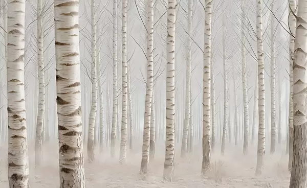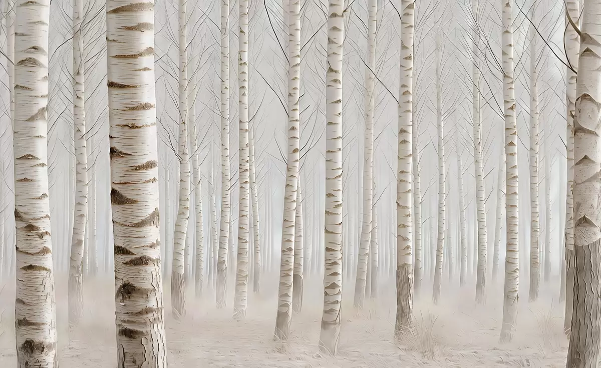 Fototapeter Bjørkeskog i tåken, lett minimalisme Nr. w04574