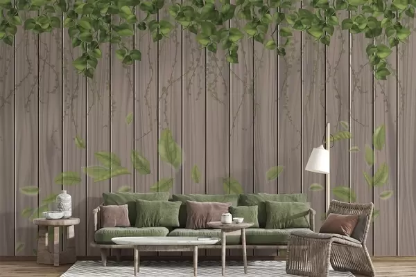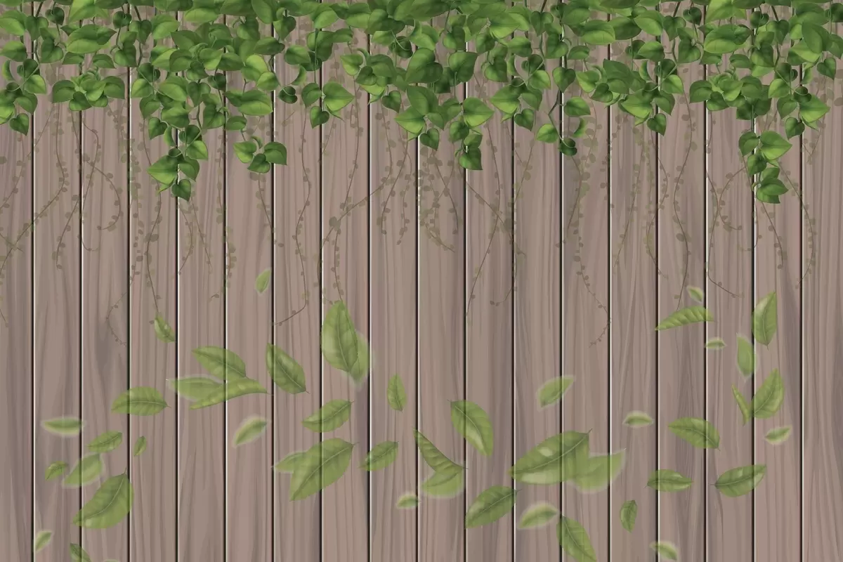 Fototapeter Imitasjon av treplanker med hengende blader Nr. w04603
