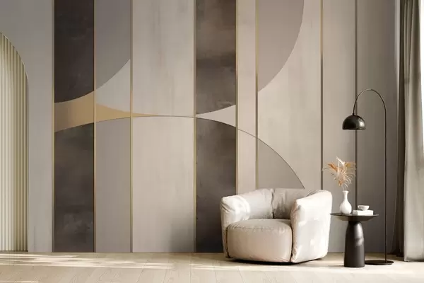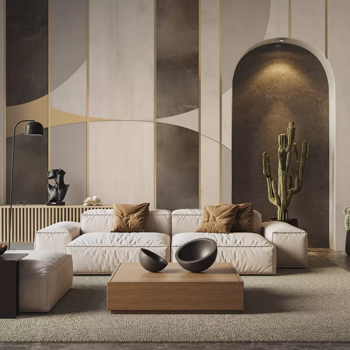 fototapeter Geometriske paneler med buer og champagnefargede detaljer w04616