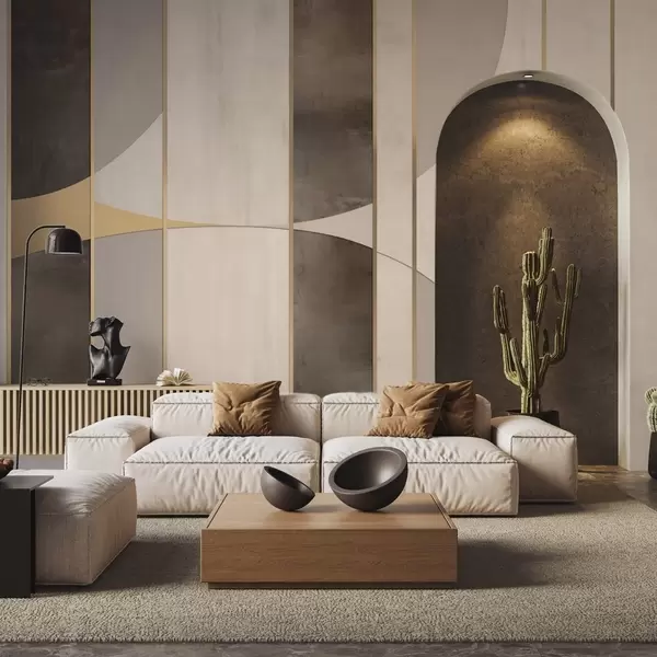 Fototapeter Geometriske paneler med buer og champagnefargede detaljer Nr. w04616