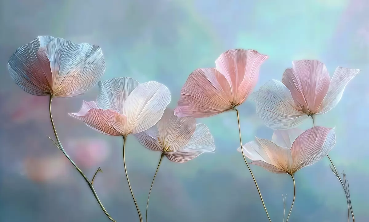 Fototapeter Gjennomsiktige kronblader i pastellrosa og blå toner Nr. w04621