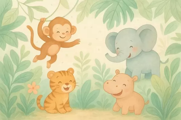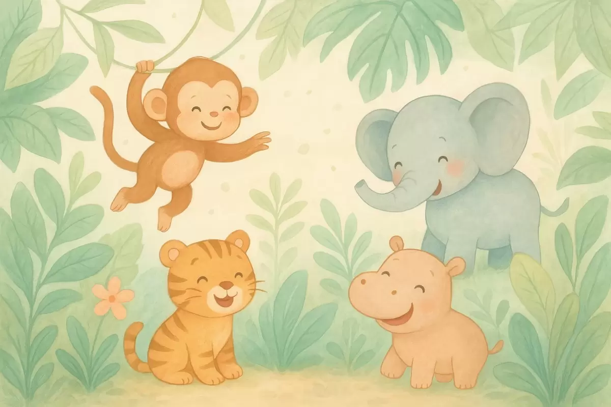 Fototapeter søte babydyr i jungelen Nr. w04622