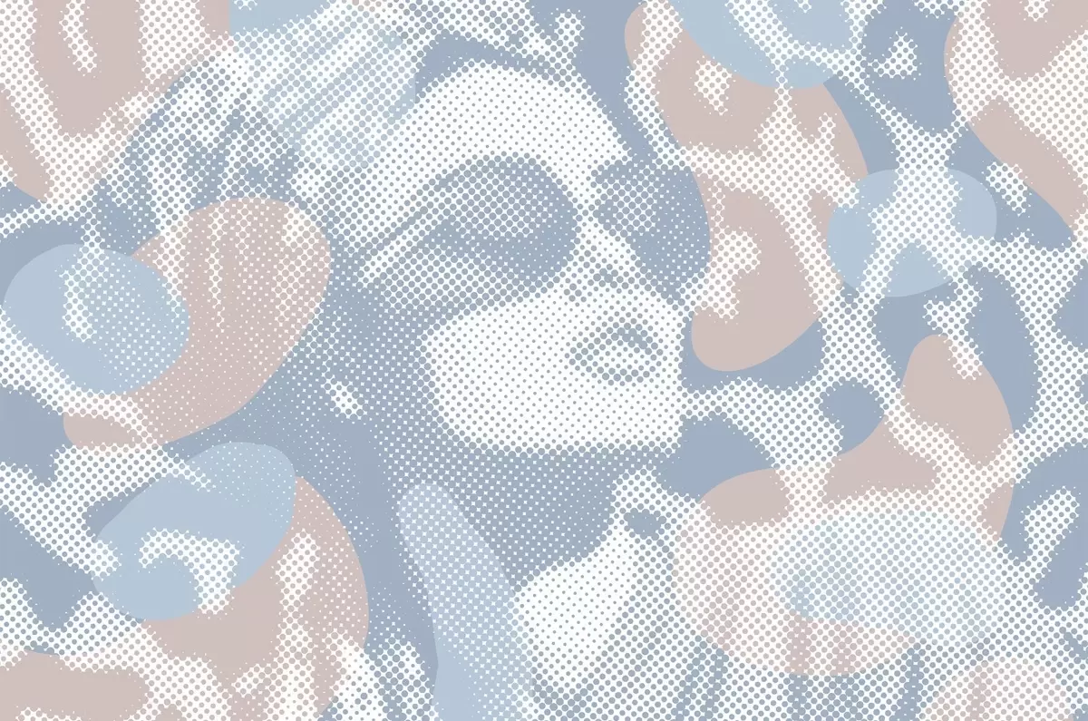 Fototapeter portrett av en kvinne på en leopardbakgrunn i en prikkete stil i blåtoner Nr. w04630v1