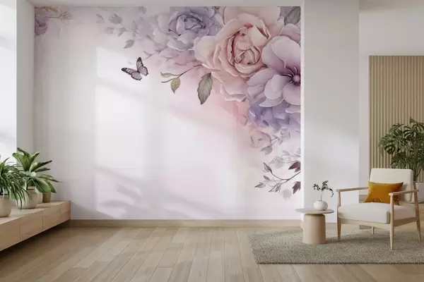 Fototapeter Delikate rosa og lilla blomster med en sommerfugl Nr. w04711