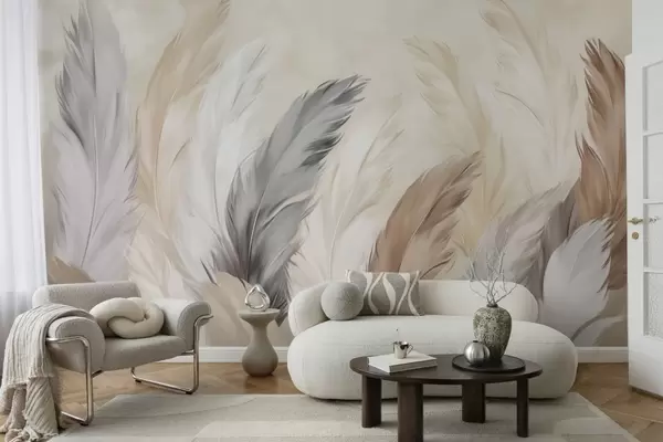 Fototapeter Myke, luftige fjær i en varm, nøytral fargepalett Nr. w04736