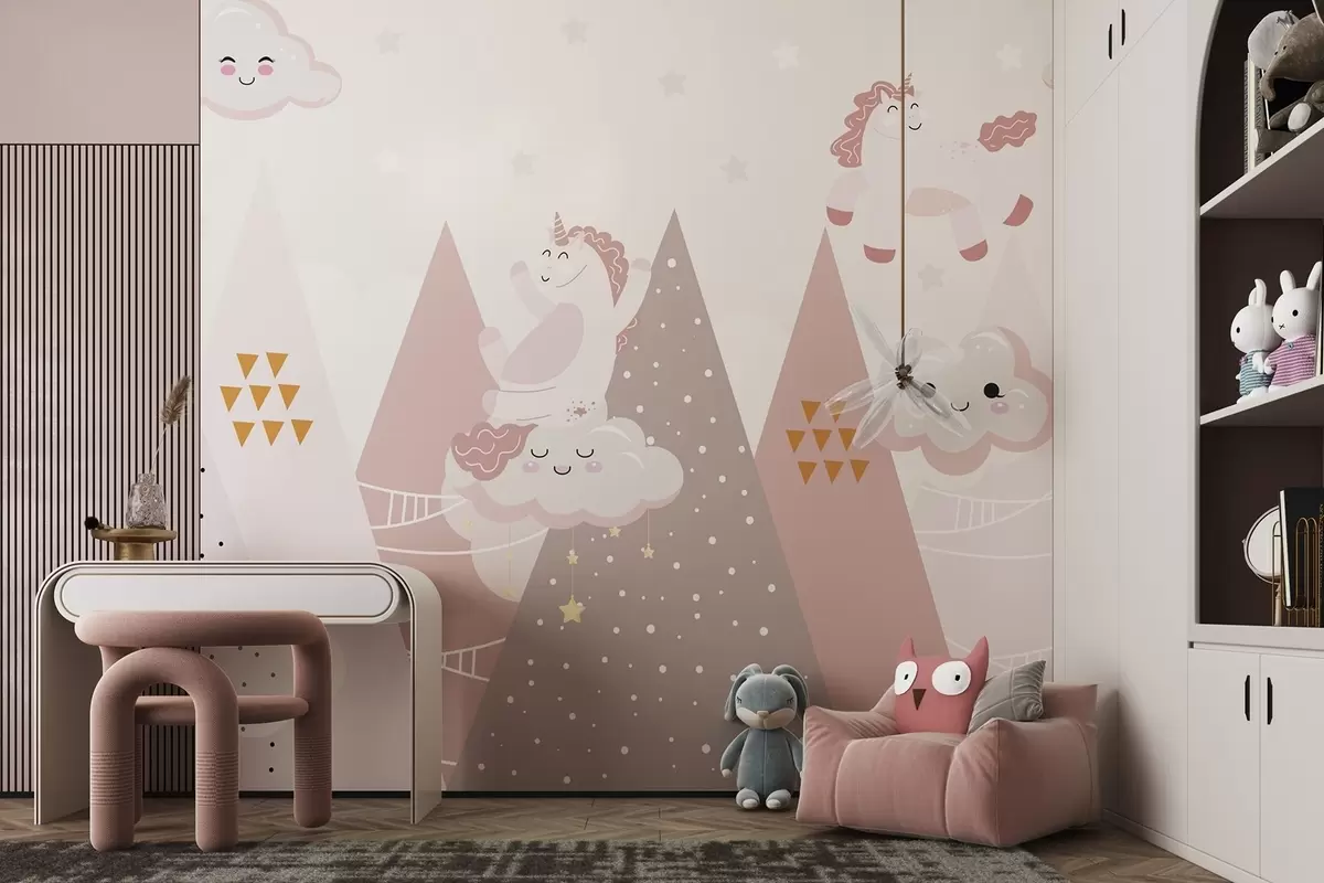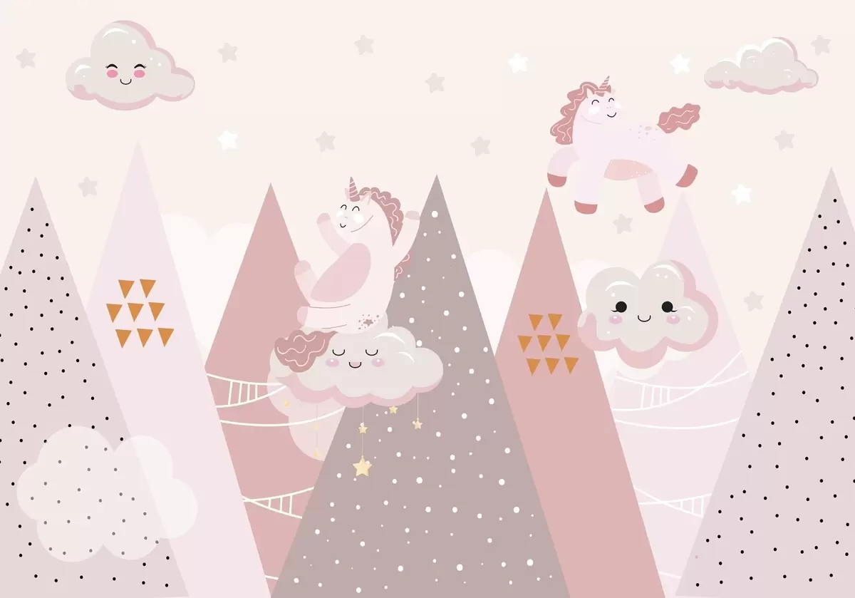 Fototapeter Pony i fjellene med skyer Nr. w04741