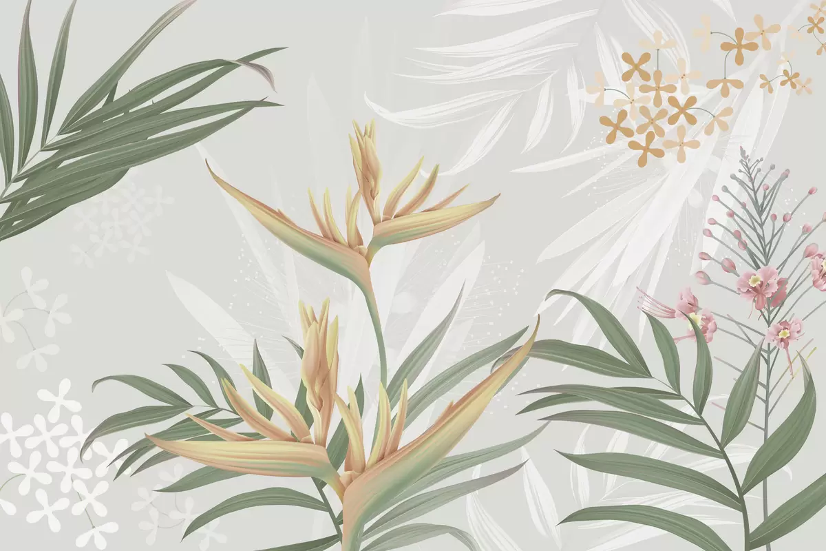 Fototapeter Eksotiske Strelitzia-blomster i løvverk Nr. w04783