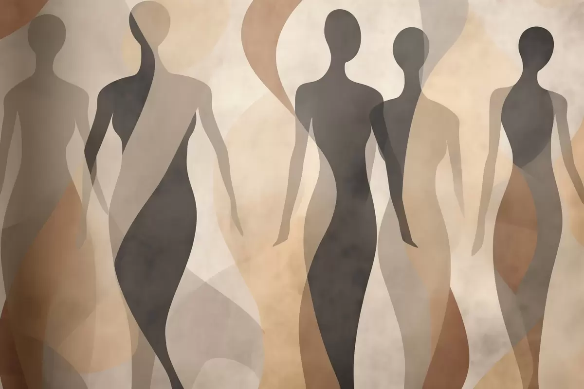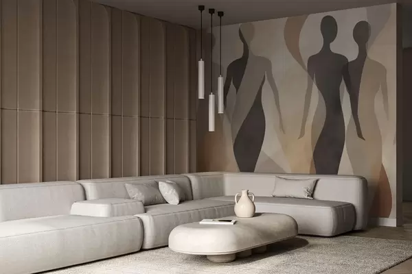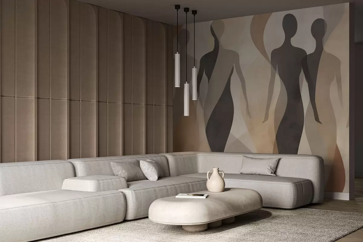 Fototapeter Silhuettfigurer og myke bølger i varme beige-grå toner Nr. w04787