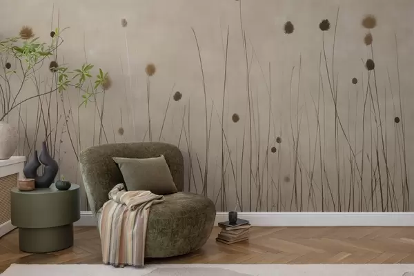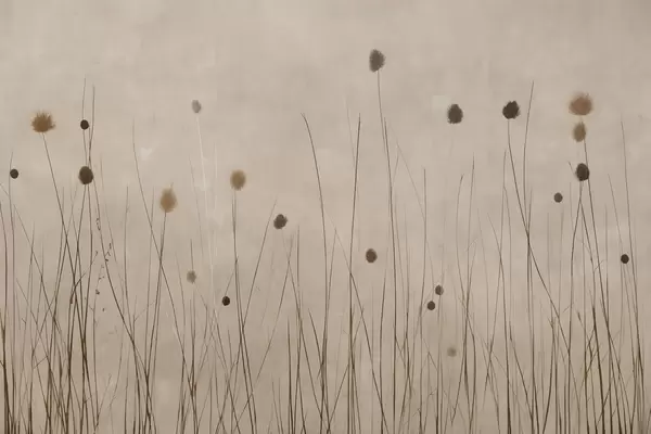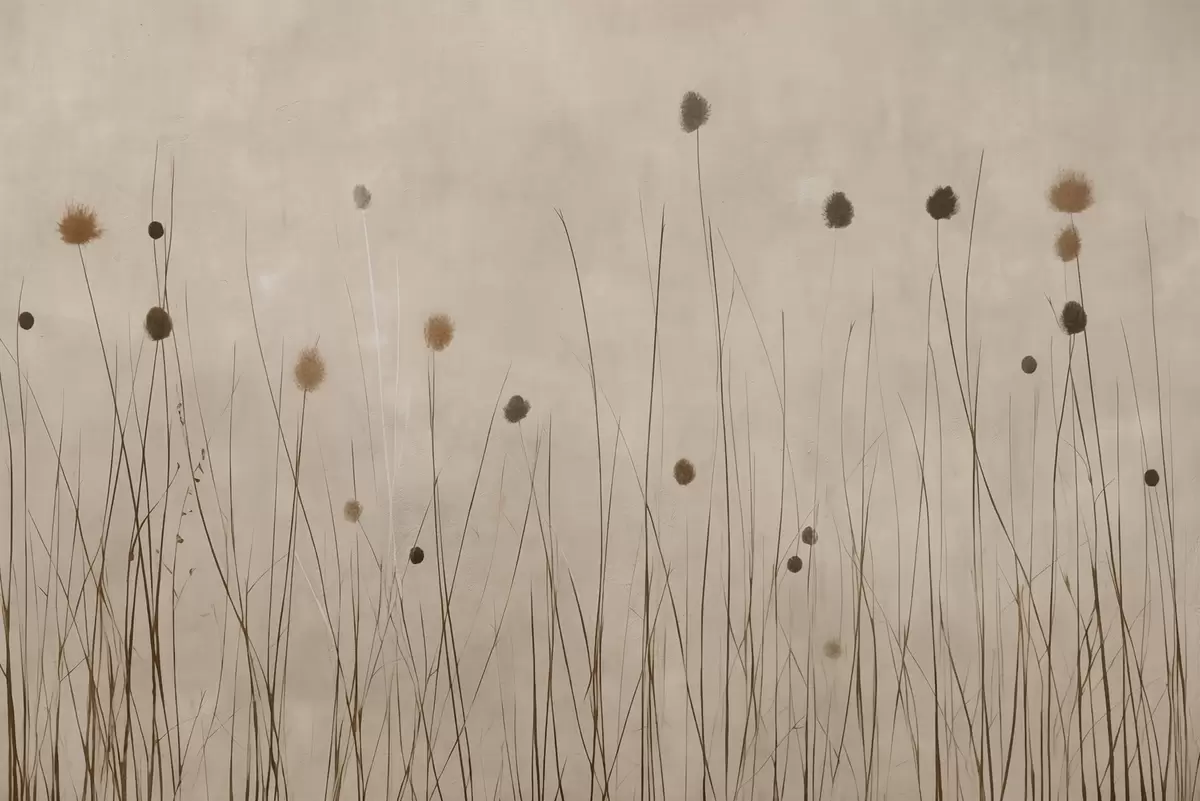 Fototapeter Tynne gress og fluffy frøhoder på en varm beige bakgrunn Nr. w04793