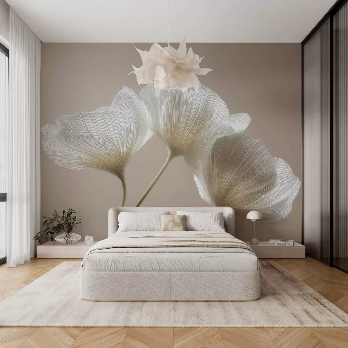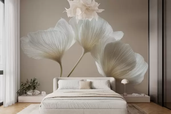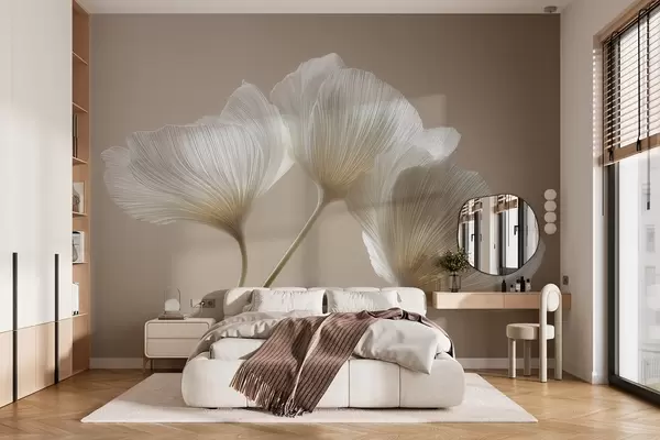 Fototapeter tre delikate blomster på beige bakgrunn Nr. w04810