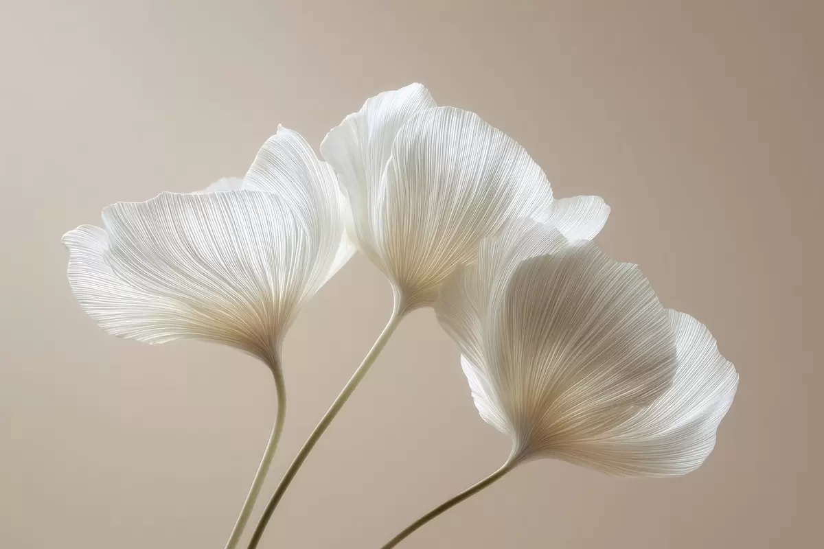 Fototapeter tre delikate blomster på beige bakgrunn Nr. w04810