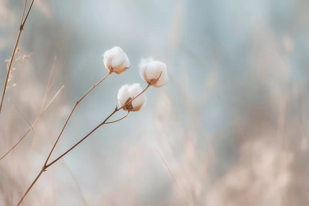 Fototapeter tre bomullsblomster på en uskarp bakgrunn Nr. w04820