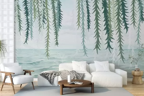Fototapeter Delikate vinstokker som henger over vannet, akvarellstil Nr. w04830