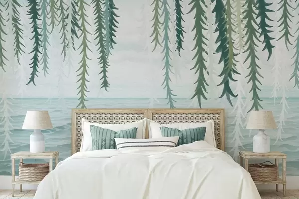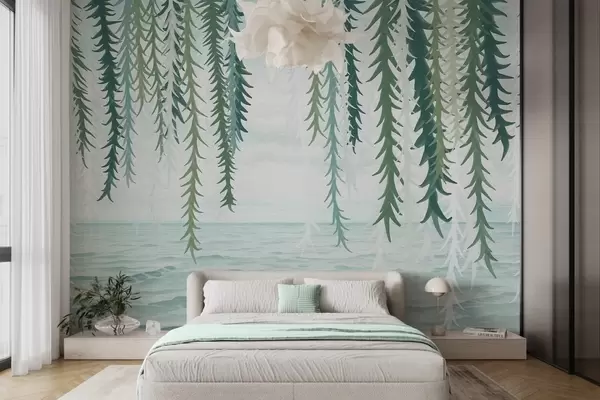 Fototapeter Delikate vinstokker som henger over vannet, akvarellstil Nr. w04830