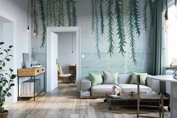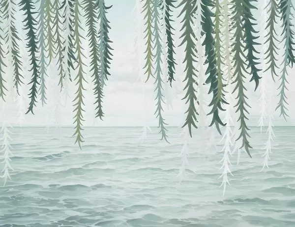 Fototapeter Delikate vinstokker som henger over vannet, akvarellstil Nr. w04830
