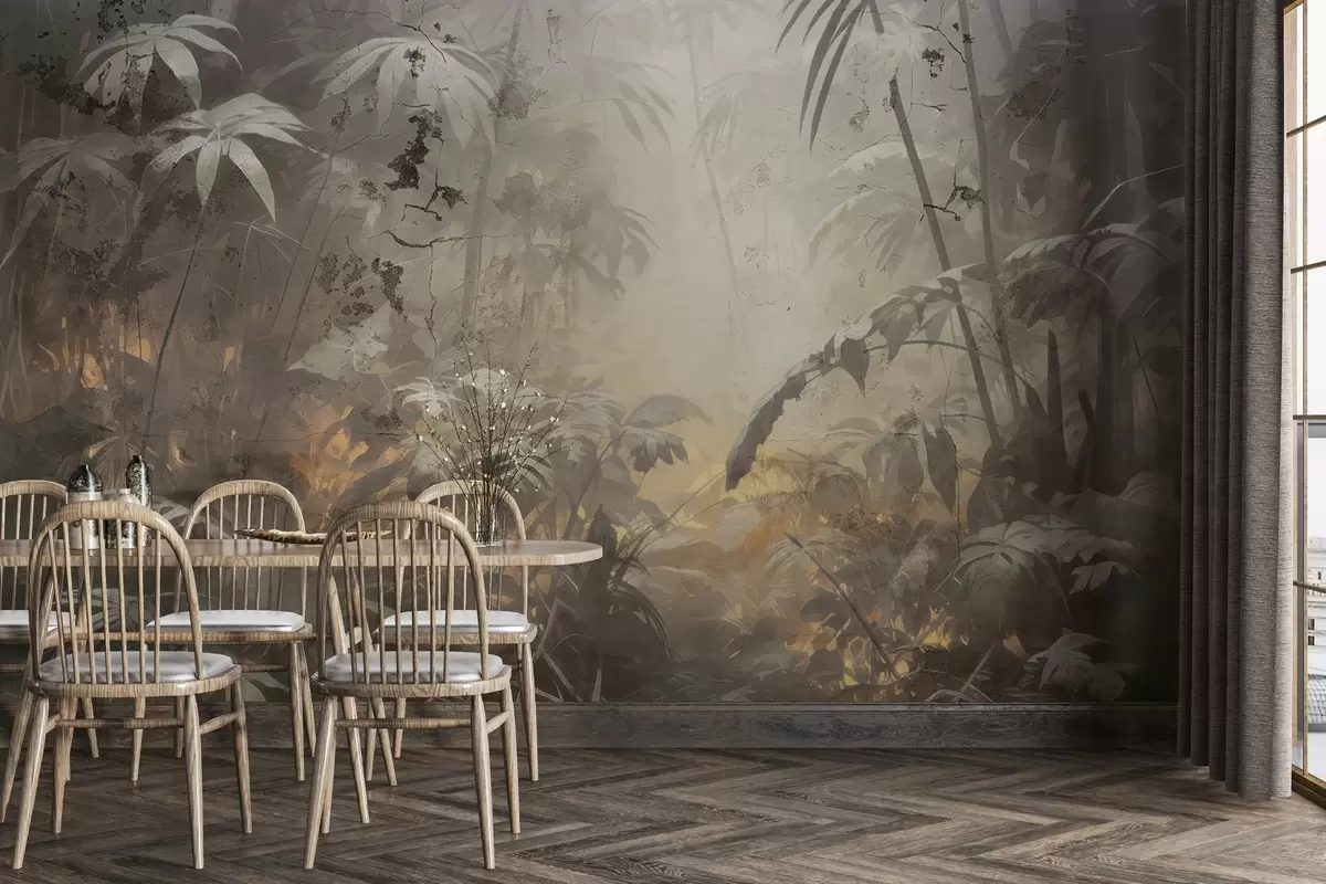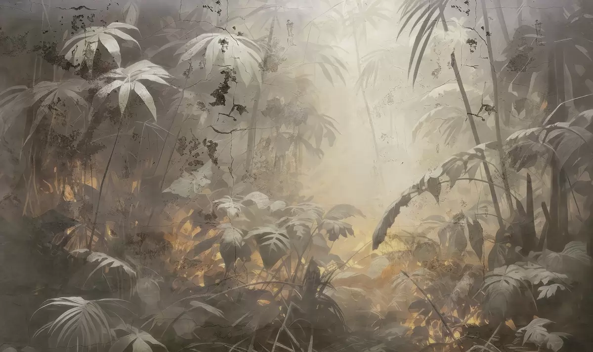 Fototapeter Malt jungel bak en grunge betongvegg Nr. w04833