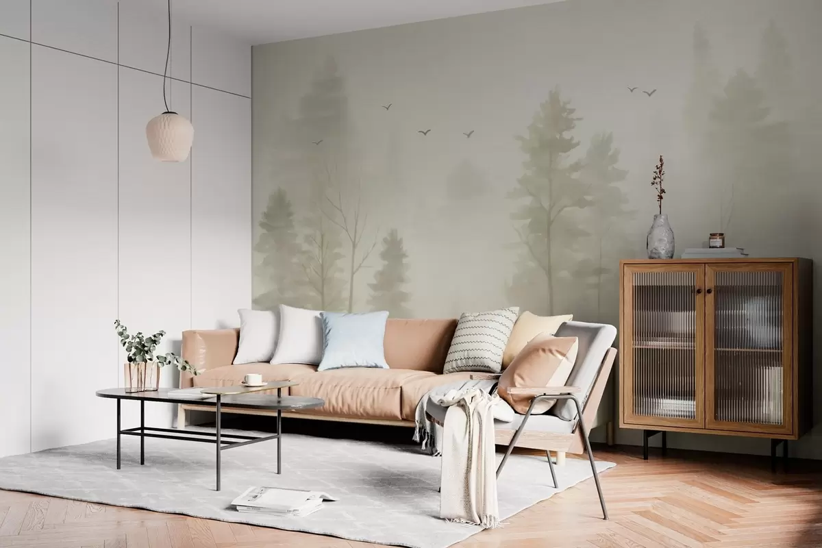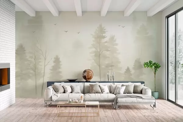 fototapeter akvarellaktig luftskog i beige toner w04872