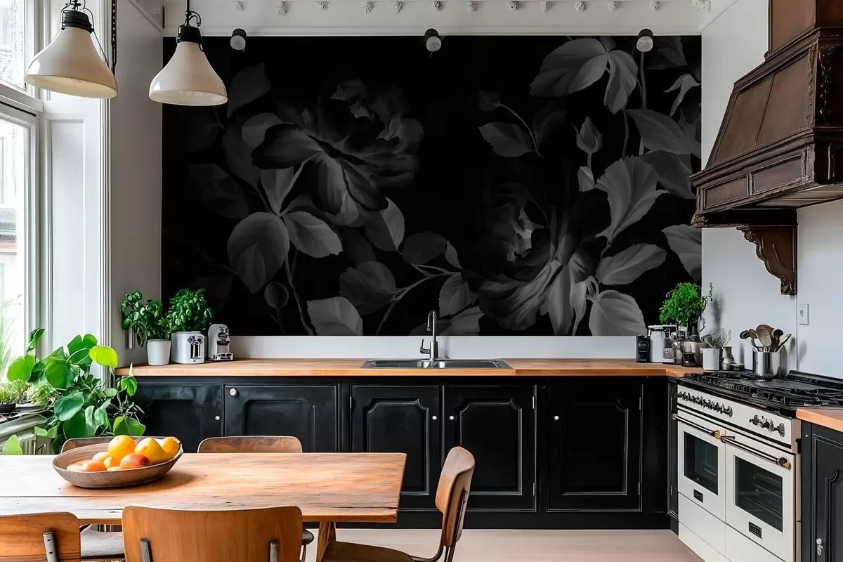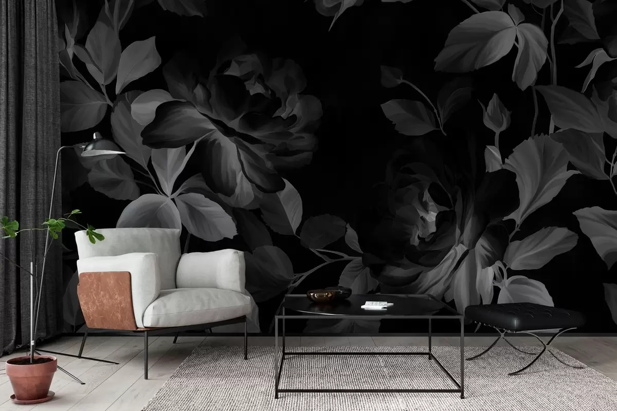 Fototapeter svart-hvite maleriske roser i stil med oljemaleri Nr. w04873v1