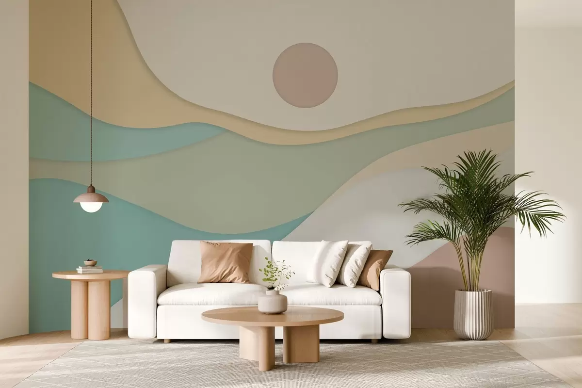 Fototapeter Minimalistisk abstraksjon med myke, bølgeformede former som minner om flytende landskap og sanddyner. Nr. w04874