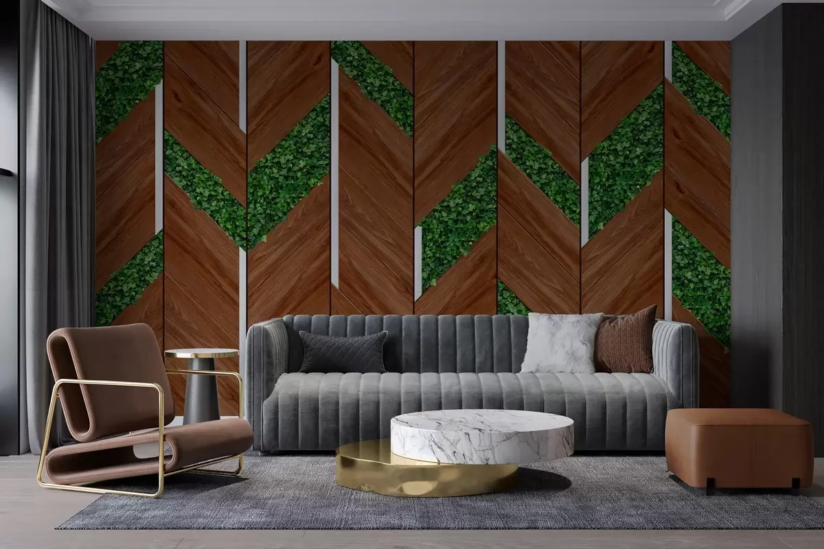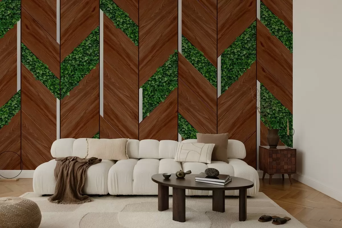 Fototapeter imitasjon av mørke trepaneler med planteinnlegg Nr. w04875v1