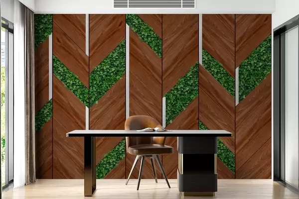 Fototapeter imitasjon av mørke trepaneler med planteinnlegg Nr. w04875v1