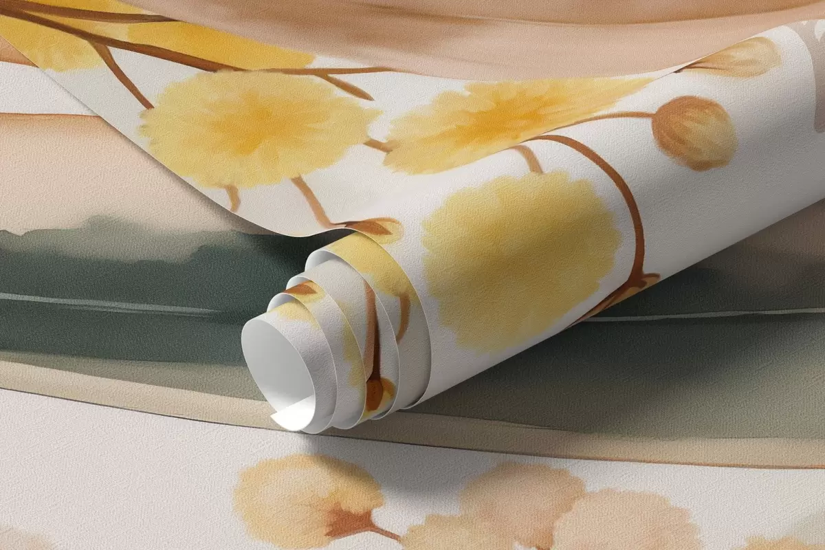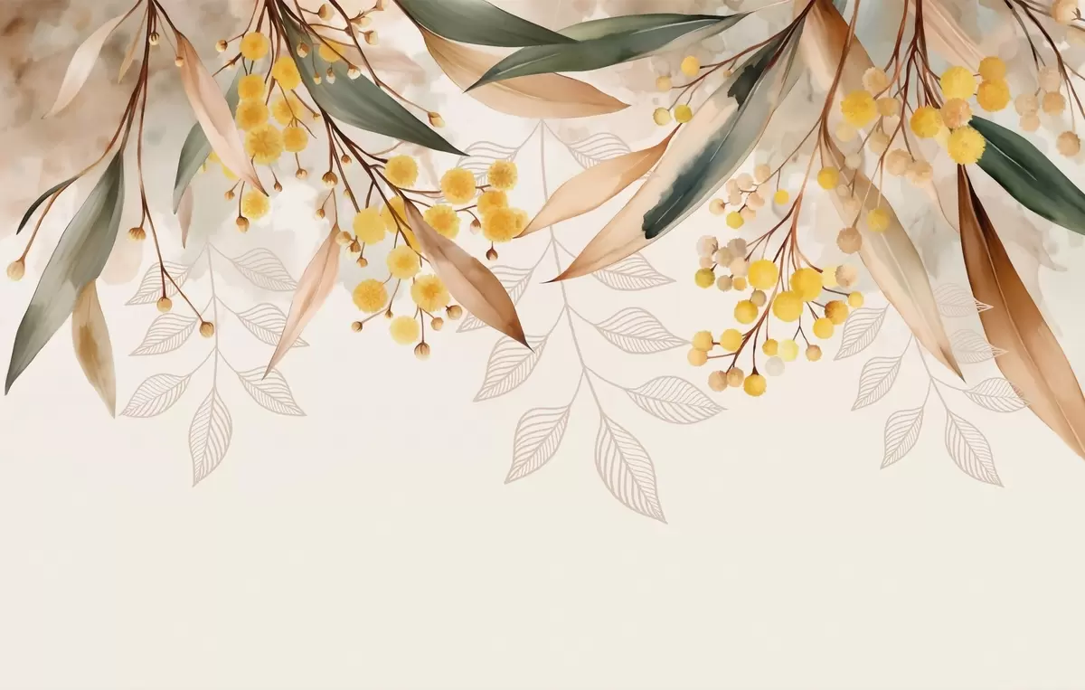 Fototapeter blomster og blader av mimosa som faller ned fra oven i akvarellstil Nr. w04880