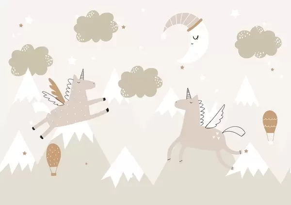 Fototapeter Sovende måne, enhjørninger og ballonger Nr. w04886