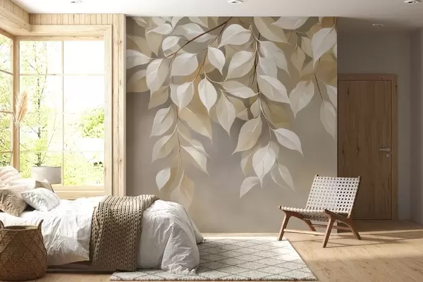 Fototapeter En kvist kjørvel med blader Nr. w04899