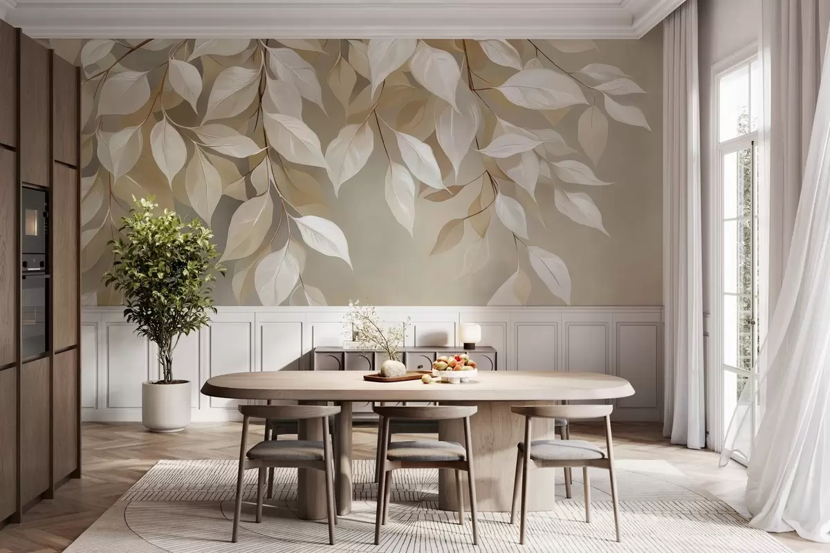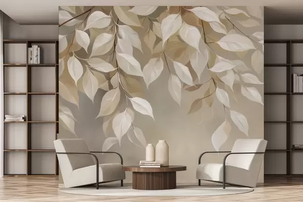 Fototapeter En kvist kjørvel med blader Nr. w04899