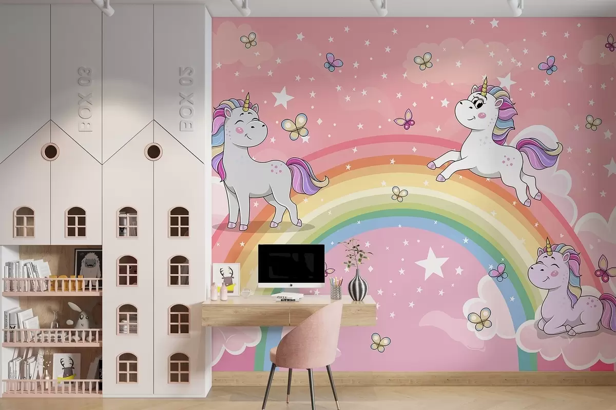 Fototapeter Enhjørninger på en regnbue Nr. w04930