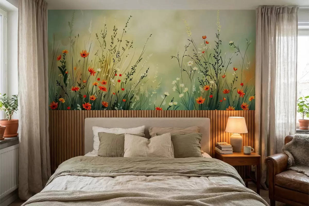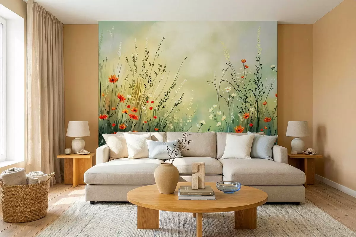 Fototapeter Engblomster og gress i myk, malerisk stil Nr. w05015