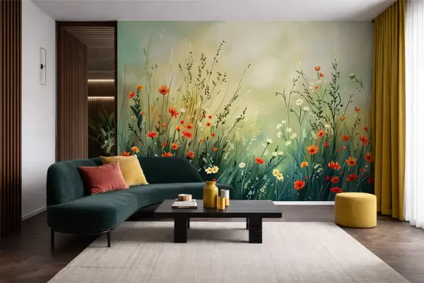 fototapeter Engblomster og gress i myk, malerisk stil w05015