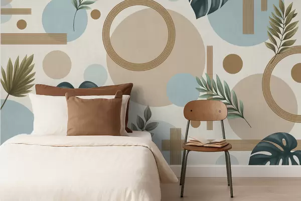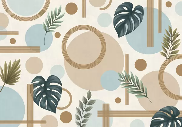Fototapeter Geometrisk mønster med blader og sirkler i rolige farger Nr. w05018