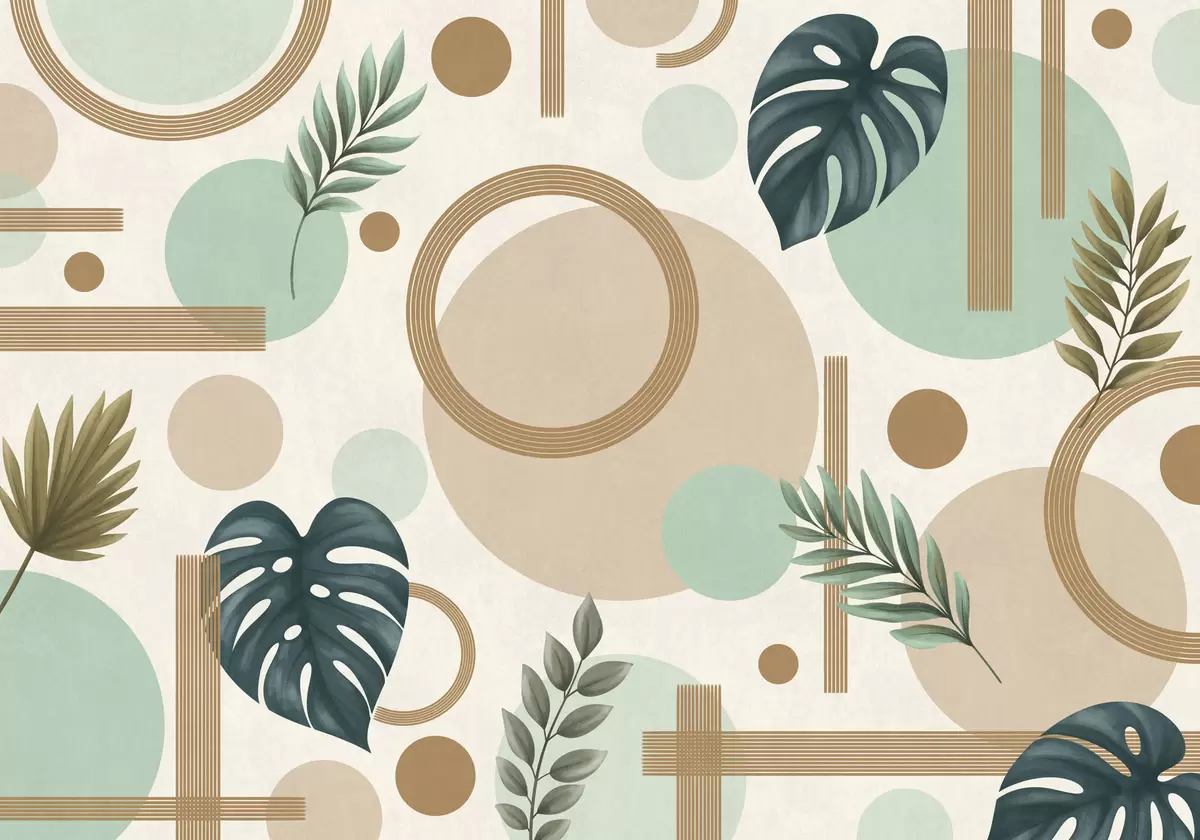 Fototapeter Geometrisk mønster med blader i grønn palett Nr. w05018v1