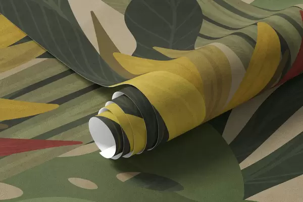 Fototapeter Tropisk løvverk med store blader og blomster Nr. w05019