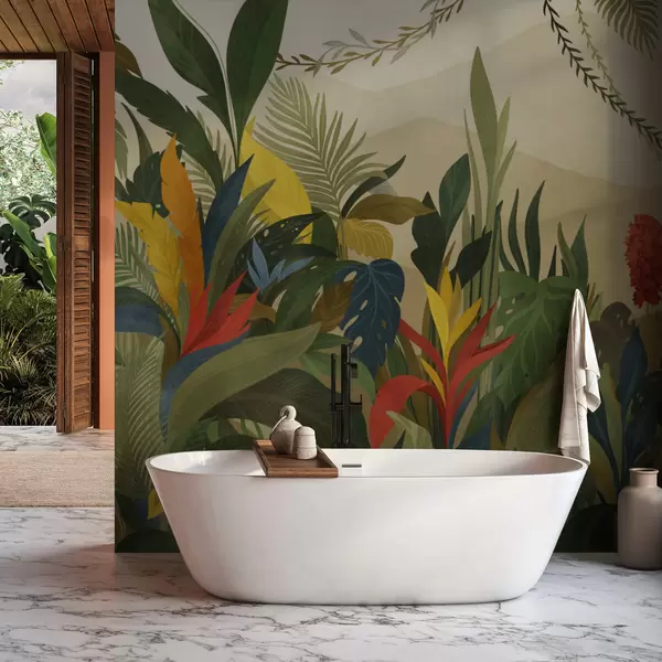 Fototapeter Tropisk løvverk med store blader og blomster Nr. w05019