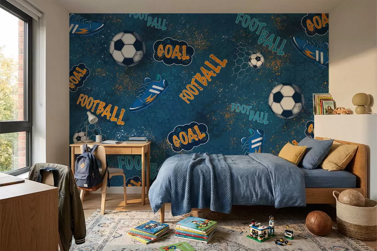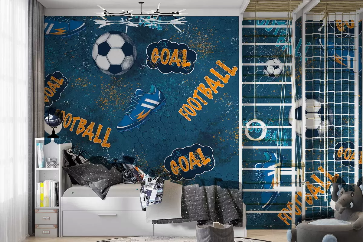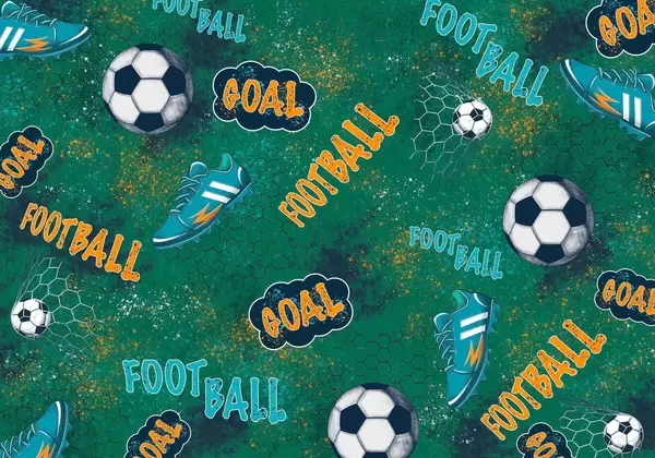 Fototapeter Barnemønster med baller, sko og sportslige ord Nr. w05037