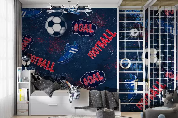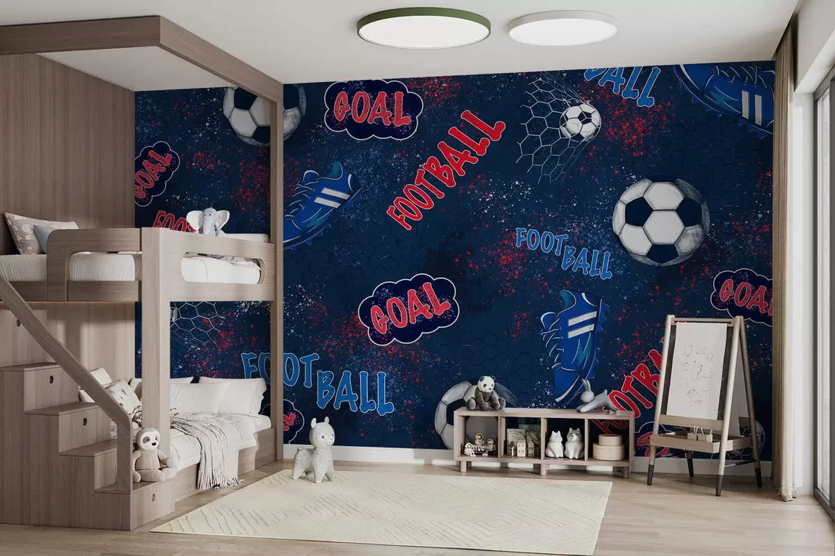 Fototapeter Gjentagende mønster med baller, fotballsko og tekstelementer Nr. w05037v2