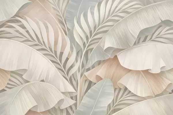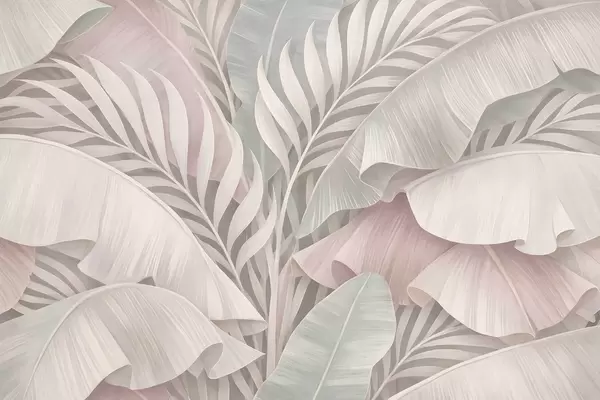 Fototapeter store tropiske blader i farger av fersken og matt turkis Nr. w05062