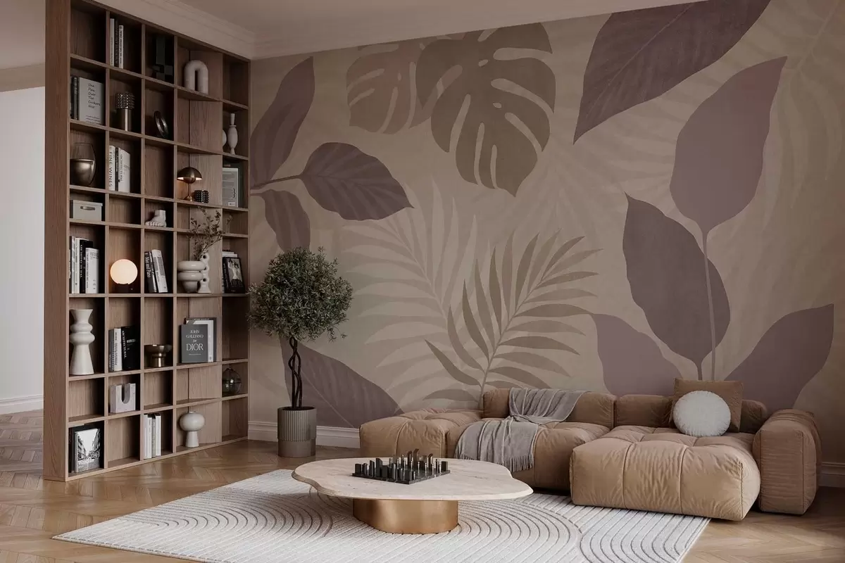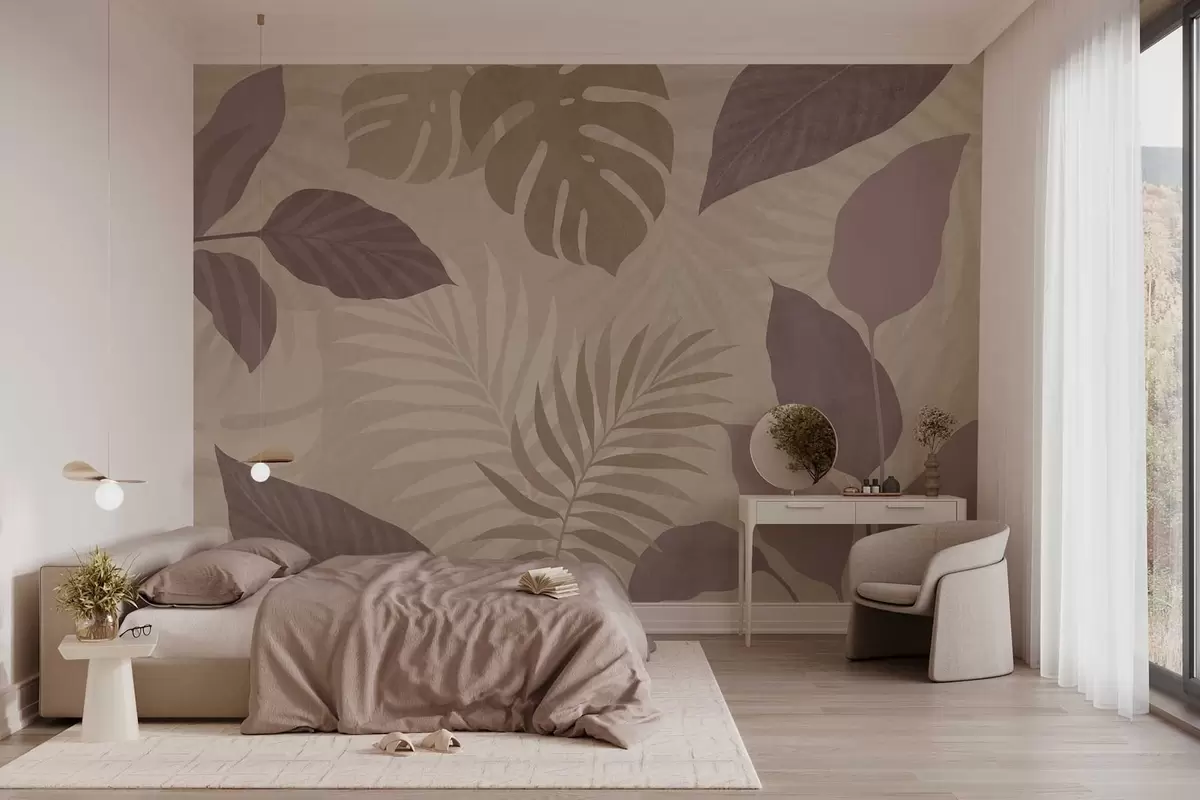 Fototapeter strukturerte tropiske blader på sandbakgrunn Nr. w05063