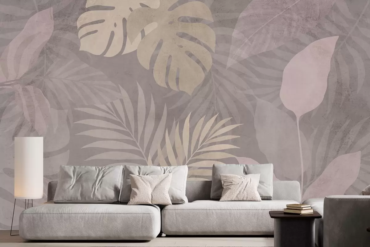 Fototapeter strukturerte tropiske blader på grå bakgrunn Nr. w05063v1