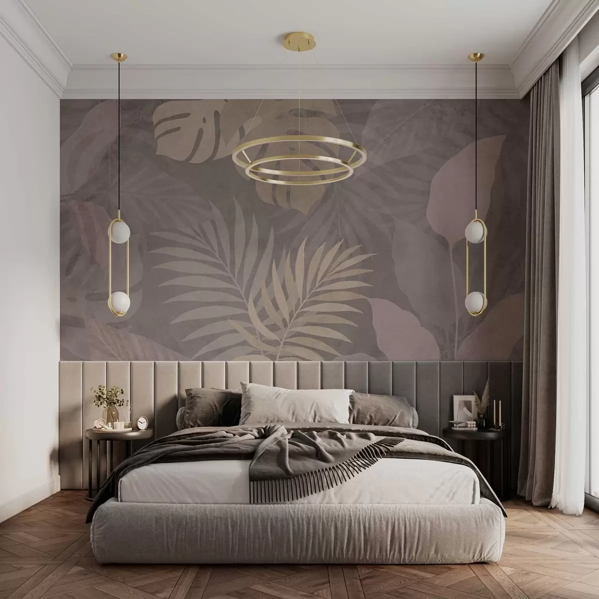 Fototapeter strukturerte tropiske blader på grå bakgrunn Nr. w05063v1
