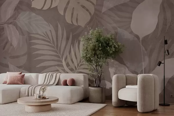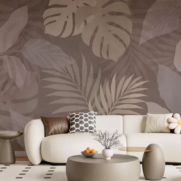Fototapeter strukturerte tropiske blader på sjokoladebrun bakgrunn Nr. w05063v2