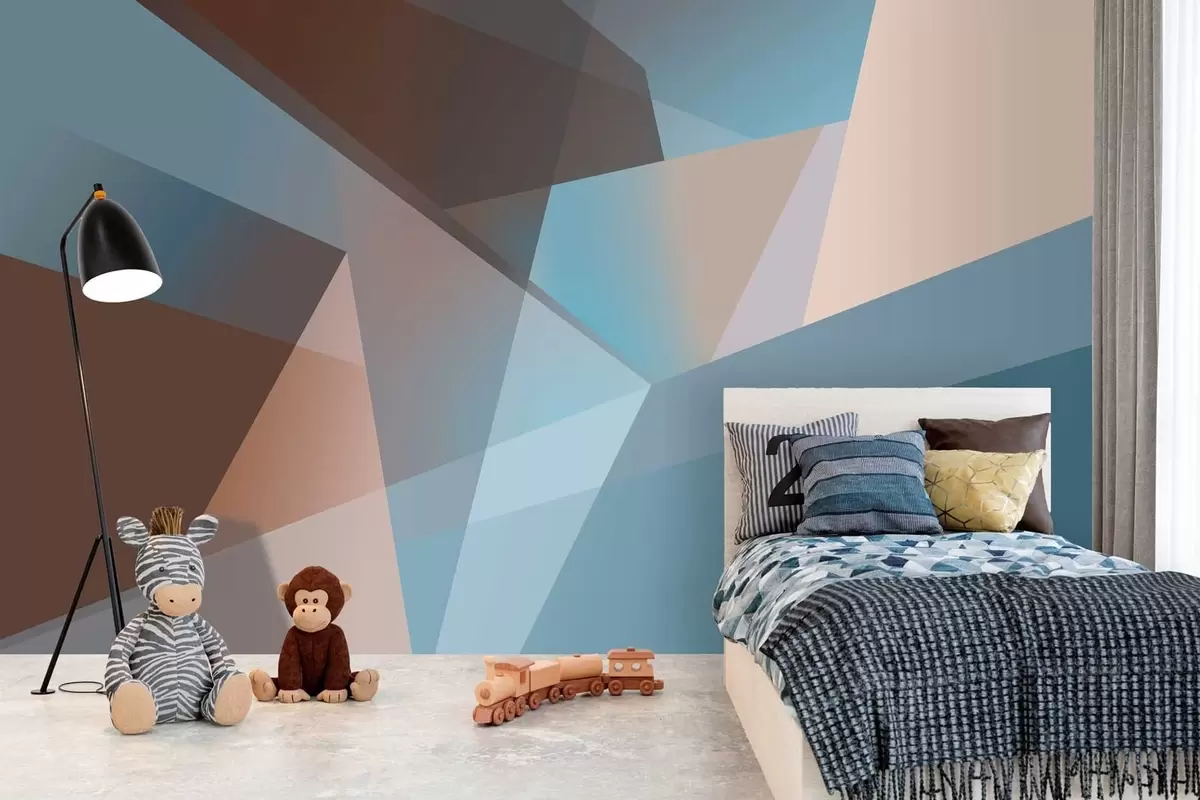 Fototapeter abstrakt geometri i blå og brune toner Nr. w05064