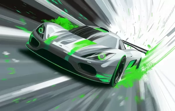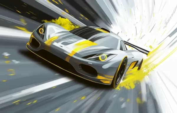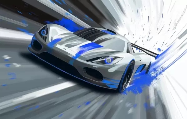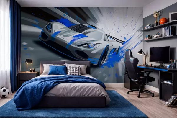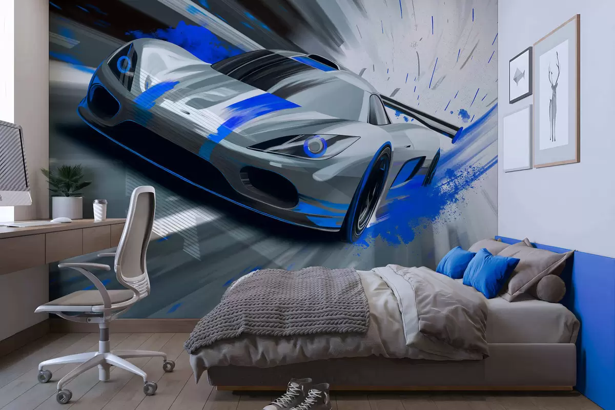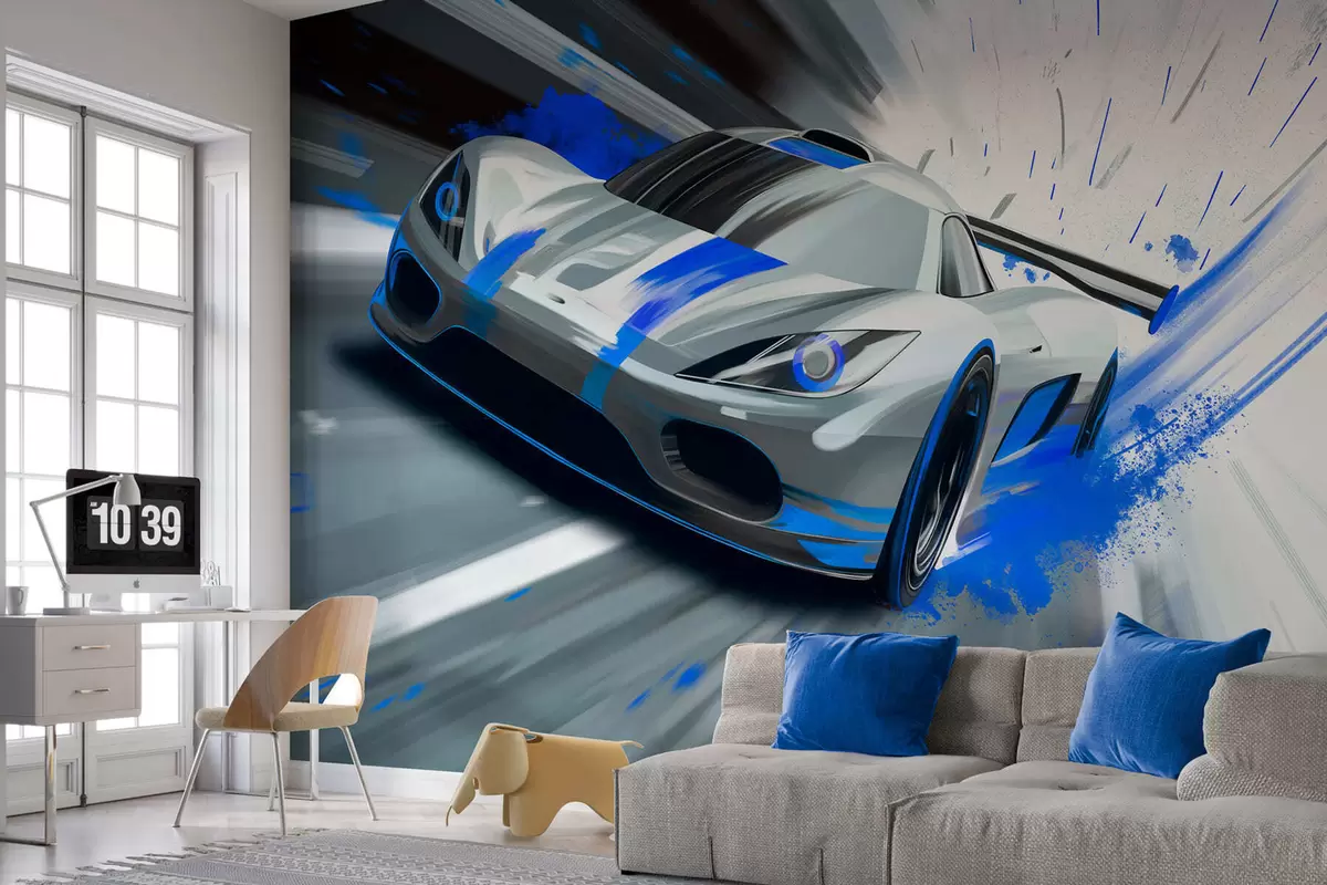 Fototapeter Dynamisk sportsbil i digital tegningsstil med blå detaljer Nr. w05069