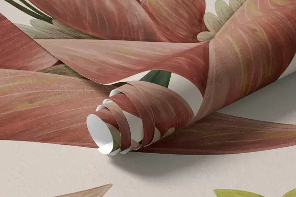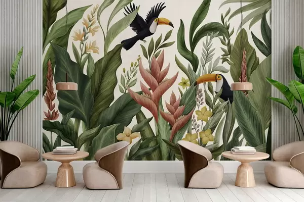 Fototapeter Tropiske planter og fugler med store nebb på lys bakgrunn Nr. w05088v1