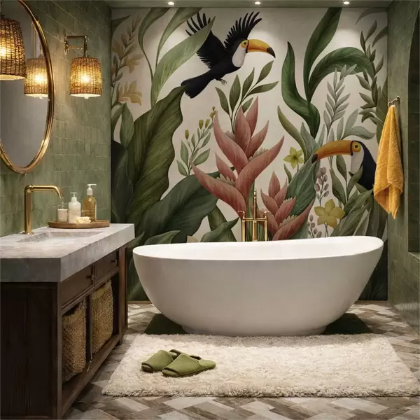 Fototapeter Tropiske planter og fugler med store nebb på lys bakgrunn Nr. w05088v1