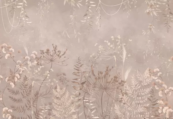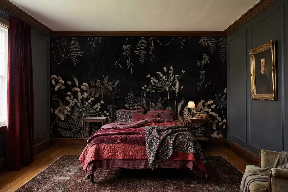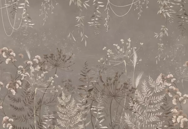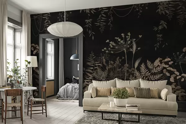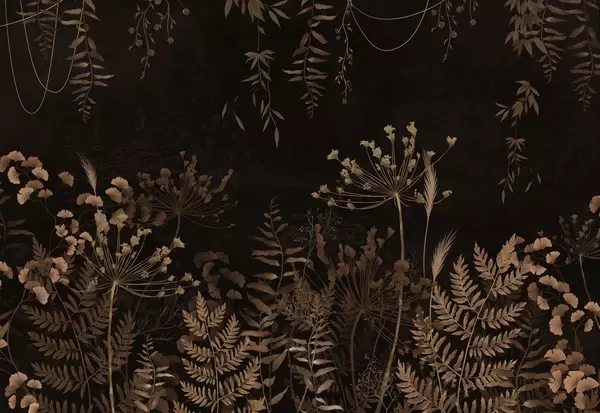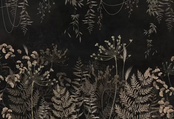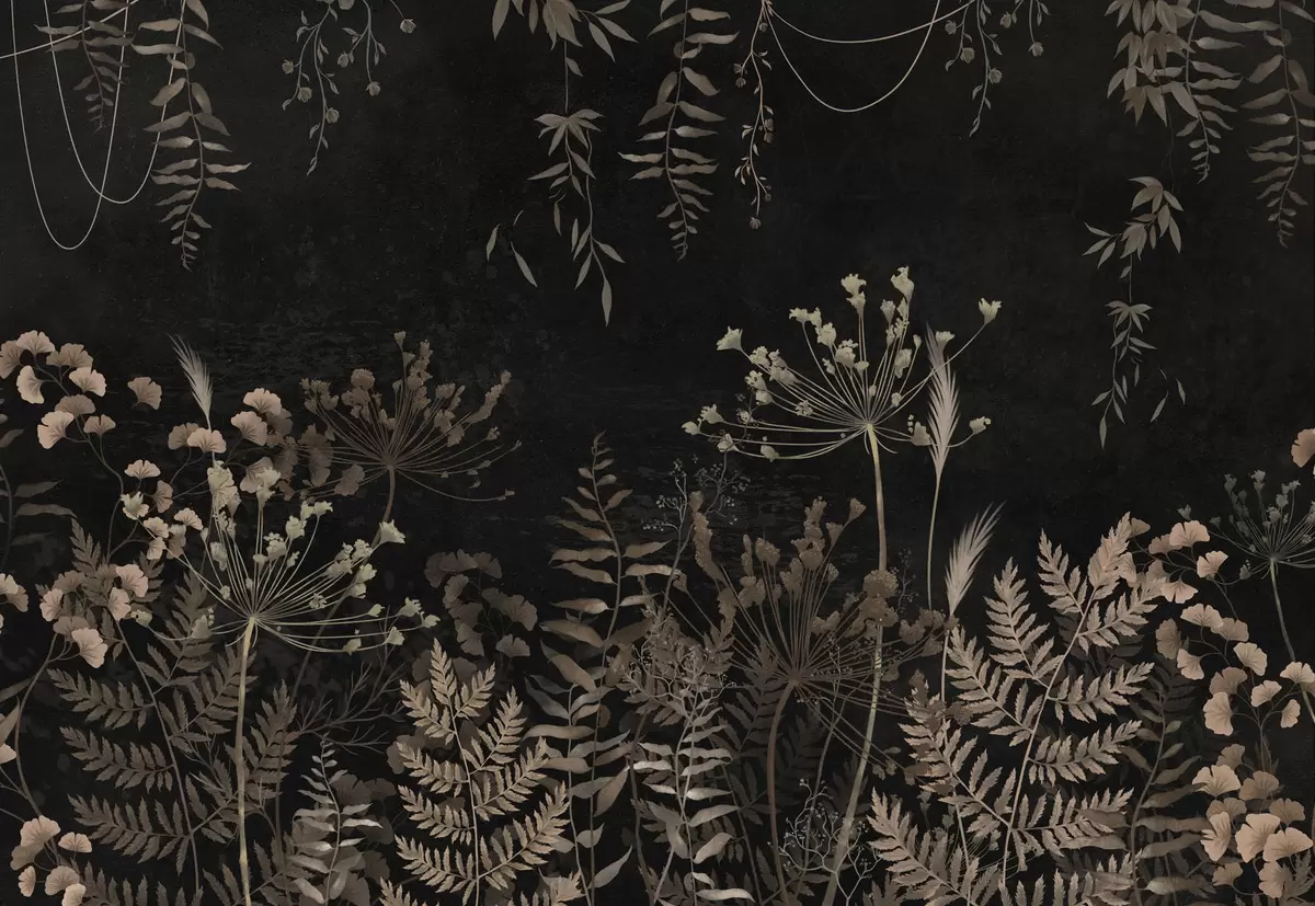 Fototapeter Mørkt botanisk mønster med blomster og blader Nr. w05092