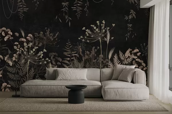 Fototapeter Mørkt botanisk mønster med blomster og blader Nr. w05092