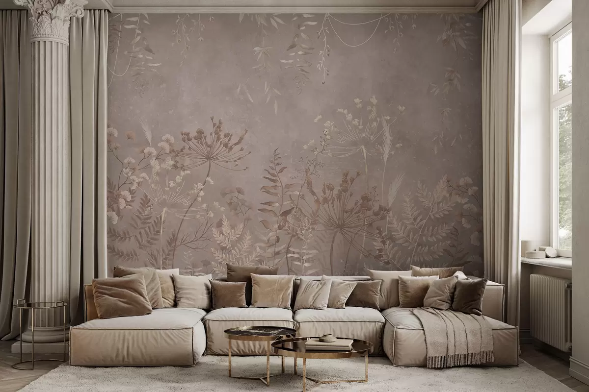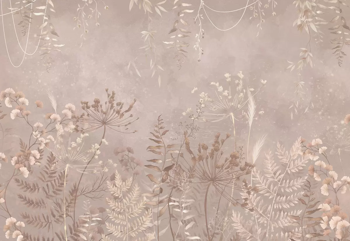 Fototapeter Mykt beige botanisk mønster med villblomster Nr. w05092v2